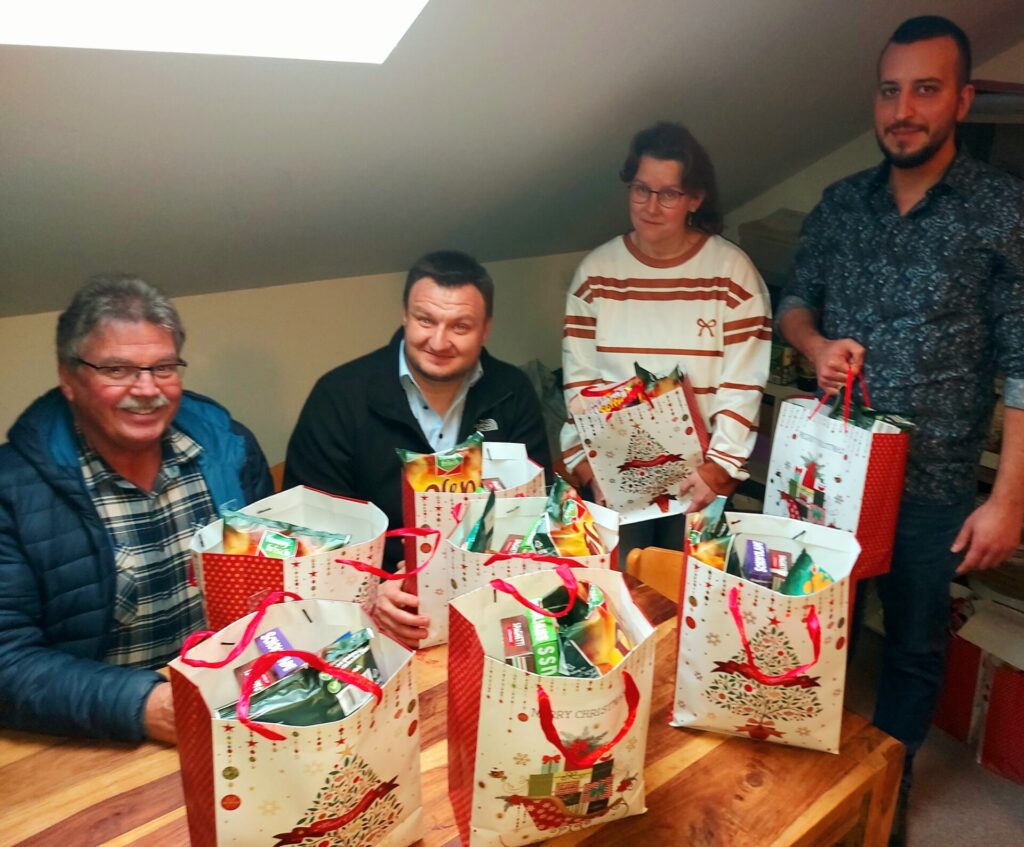 Weihnachtstüten für die Bewohner des Obdachlosenheimes Cosima überreicht Peter Kropf von der Kurier-Stiftung „Menschen in Not“ an das Team der Diakonie, Christoph Sobek, Melanie Weis-Gerlach und Danilo Sciré (von links). Foto: Gabi Schnetter